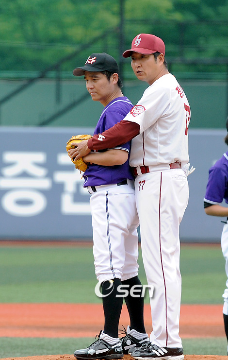 KBS 2TV 예능프로그램 '천하무적 토요일' 김창렬, 이하늘, 임창정, 오지호, 마르코, 김준, 한민관, 동호, 마리오 등이 소속되어있는 '천하무적 야구단'이 13일 오후 프로야구 히어로즈 김시진 감독, 정민태,홍원기 코치, 김동수, 이숭용, 브룸바, 황재균 선수들이 참가한 가운데 경기및 훈련을 가졌다. 촬영한 녹화분은 25일 오후 6시 30분 KBS2TV '천하무적 토요일' 프로그램을 통해 방영될 예정이다. 경기에 앞서 정민태 코치가 임창정에게 투수 와인드업 자세를 가르치고 있다./김영민 기자ajyoung@osen.co.kr