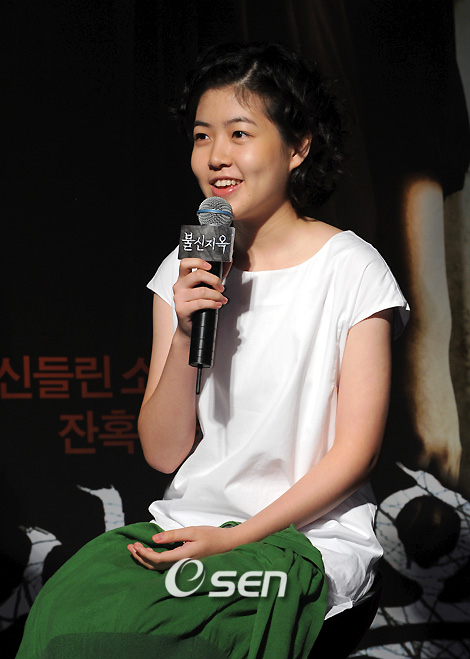 남상미, 류승룡, 심은경, 김보연이 출연하고 이용주 감독이 메가폰을 잡은 영화 '불신지옥' 제작보고회가 14일 아트선재센터에서 열렸다. 신들린 소녀를 둘러싼 사람들의 잔혹한 욕망과 믿음을 그린 종교를 소재로 한 최초의 미스터리 공포 '불신지옥'은 신들림과 무속신앙이라는 한국에서만 다룰 수 있는 독특한 소재를 그린 영화이다. 심은경이 24시간 촬영애 공포감 보다 피로감이 엄습해왔다며 이야기를 하고 있다./김영민 기자ajyoung@osen.co.kr