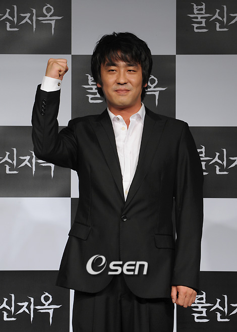 남상미, 류승룡, 심은경이 출연하고 이용주 감독이 메가폰을 잡은 영화 '불신지옥' 제작보고회가 14일 아트선재센터에서 열렸다. 신들린 소녀를 둘러싼 사람들의 잔혹한 욕망과 믿음을 그린 종교를 소재로 한 최초의 미스터리 공포 '불신지옥'은 신들림과 무속신앙이라는 한국에서만 다룰 수 있는 독특한 소재를 그린 영화이다. 류승룡이 파이팅 포즈를 취하며 포토타임을 갖고 있다./김영민 기자ajyoung@osen.co.kr
