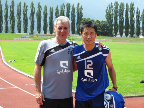 사우디아라비아의 알 힐랄로 이적한 이영표(32)가 팀 합류 후 첫 훈련에 참가했다. 이영표는 지난 11일 보루시아 도르트문트서 알 힐랄로 이적해 1년 계약(연봉 17억 원, 추정치)을 맺었다. 이영표의 에이전트인 지쎈은 15일 "14일 출국한 이영표가 팀 전지훈련지인 오스트리아 잘츠부르크에 도착해 첫 훈련을 실시했다. 이영표는 오스트리아 등 유럽 현지서 약 3주간의 훈련을 마친 뒤 오는 8월 13일 리야드의 홈구장서 친선경기를 통해 홈 팬들에게 첫 선을 보인다"고 전했다. 지난 시즌 이영표는 왼쪽 발등인대 부상과 경쟁자 데데의 복귀로 8경기 연속 결장해 설 곳을 잃어 이적을 추진했고 알 힐랄의 새로운 감독인 에릭 게레츠(벨기에, 올림피크 마르세유-갈라타사라이 감독 출신)가 영입을 간절히 원해 결국 사우디행을 택하게 됐다. 이영표는 지난 1월 설기현(30, 풀햄)이 6개월간 임대로 몸 담았던 알 힐랄에 합류해 루마니아와 스웨덴 대표팀 출신인 미렐 라도이와 크리스티안 빌헬름손 등과 함께 6주 후에 재개되는 시즌을 준비하고 있다. 이영표는 안양 LG(70경기/3골) PSV 아인트호벤(101경기/1골) 토튼햄 핫스퍼(92경기) 보루시아 도르트문트(16경기)에 이어 생애 5번째 팀에서 새로운 도전에 나선다. parkrin@osen.co.kr 지쌘 제공-이영표와 에릭 게레츠 감독