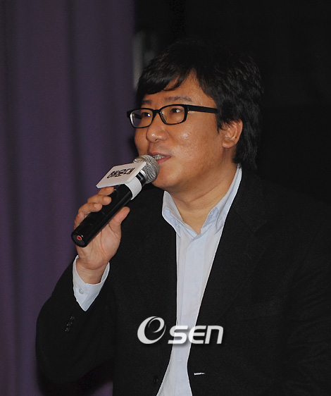 설경구 하지원 박중훈 엄정화 이민기 강예원 김인권이 출연하고 윤제균 감독이 메가폰을 잡은 대한민국 최초의 휴먼 재난 블록버스터 영화 '해운대' 시사회가 16일 오후 서울 용산 CGV에서 열렸다. 부산 해운대에 쓰나미가 불어 닥친다는 설정으로 한치 앞을 내다볼 수 없는 쓰나미의 공포를 생생하게 담고 있는 '해운대'는 설경구 하지원 박중훈 엄정화 등의 쟁쟁한 출연진이 쓰나미와 처절한 사투를 벌이게 된다. 윤제국 감독이 하지원씨는 의리있는 여배우라며 이야기를 하고 있다./김영민 기자ajyoung@osen.co.kr