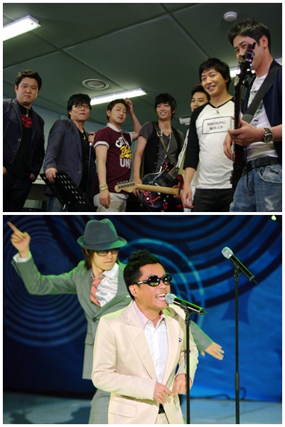 가수 김건모가 MBC ‘일요일 일요일 밤에-오빠밴드’의 정신적 리더로 깜작 출연한다. 매회 눈부신 음악적 성장을 보여주고 있는 ‘오빠밴드’가 이번에는 가수 김건모의 콘서트 무대에 올라 실력을 발휘한다. 19일 방송되는 ‘오빠밴드’에서 김건모는 갈비뼈 부상을 당한 유영석을 대신해 팀의 정신적 리더로 활약할 예정이다. ‘오빠밴드’의 제작진은 “밴드의 리더인 유영석이 부상으로 잠깐 자리를 비운 사이 김건모가 밴드의 깜짝 리더가 돼 밴드를 트레이닝 해줬다. 그리고 김건모의 콘서트에 정식 게스트로 출연해 인터미션 시간 동안 ‘어쩌다 마주친 그대’와 ‘해변으로 가요’ 2곡을 불렀다. 관객들이 열광적인 호응을 보내와 멋진 공연을 마칠 수 있었다”고 전했다. ‘오빠밴드’의 리더 유영석의 부상에 대해서는 “처음에는 갈비뼈가 부러져 촬영이 힘들지 않을까 했는데 다행히 많이 나아서 보충 촬영을 마쳤고, 앞으로의 출연에도 지장을 없을 것 같다”고 설명했다. 한편 ‘오빠밴드’는 고등학교 시절 록밴드 ‘혼수상태’의 베이시스트로 활약했던 신동엽을 주축으로 생계를 위해 로커에서 컨츄리꼬꼬로 방향을 바꾼 비운의 로커 탁재훈, 성대 결절의 아픔을 품은 한국 대중가요의 음유시인 유영석, 노래도, 연주도 부족하지만 팝 칼럼리스트를 꿈꿔 온 김구라, 슈퍼주니어의 성민, 록밴드 ‘트랙스’의 천재기타리스트 김정모로 구성돼 있으며, 서인영이 보컬로 투입돼 활약을 펼치고 있다. ricky337@osen.co.kr