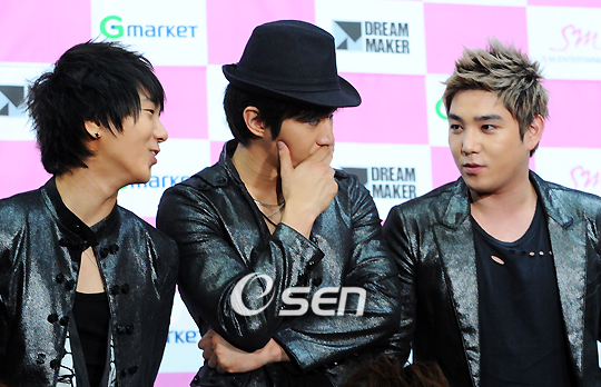 13인조 인기그룹 슈퍼주니어 두번째 아시아투어‘슈퍼쇼2'(SUPER SHOW II)기자회견이 18일 오후 서울 송파구 방이동 올림픽공원 펜싱경기장에서 열렸다. 슈퍼주니어 서울공연은 17일부터 19일까지 사흘간 서울올림픽공원 펜싱경기장에서 열린다. 기자회견에 참석한 슈퍼주니어 예성 시원 강인이 대화를 나누고 있다./윤민호 기자ymh@osen.co.kr
