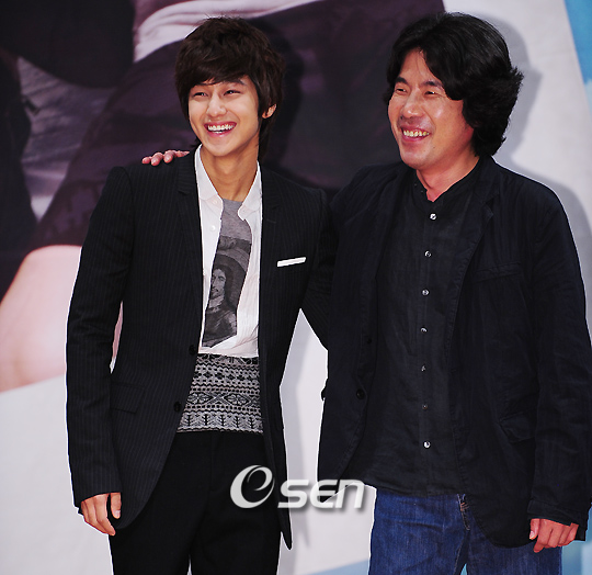 SBS 한일합작드라마 '드림'(정형수 극본, 백수찬 연출)의 제작발표회가 21일 부산 기장군 기장군청 오디토리움에서 열렸다. 이 자리에는 백수찬PD와 배우 주진모 손담비 김범 최여진 오달수가 참석했다. 종합 격투기 세계의 이면을 드러내는 스포츠 에이전트 드라마를 표방한 '드림'은 여성에게도 어필할 수 있는 세련되고 스타일리시한 K-1 파이터 컨셉트를 설정했다. 특히 손담비라는 가수의 연기 데뷔작이라는 사실과 출연 주인공들의 완벽한 몸매 라인 등으로 제작단계부터 많은 화제를 낳고 있다. 20부작으로 제작되는 '드림'은 '자명고'의 후속으로 방송되며 27일 첫 전파를 탈예정이다. 김범과 오달수가 무대 위에서 포토타임을 갖고 있다./기장(부산)=민경훈 기자 rumi@osen.co.kr