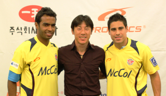 "명문 구단 성남을 K리그 정상으로 이끌 수 있도록 노력하겠다". 공격진 재편에 나선 성남 일화가 22일 새로운 외국인 선수인 파브리시오와 몰리나의 입단 기자회견을 가졌다. 부상으로 인해 계약 해지한 모따를 대신해 영입한 파브리시오와 몰리나는 각각 브라질 1부리그에서 활약한 경력을 가진 선수들. 성남 박규남 사장으로부터 각각 23번(파브리시오)과 11번(몰리나)의 유니폼을 받은 파브리시오와 몰리나는 기자회견서 K리그에 대한 기대감을 나타냈다. 먼저 한국에 도착해 이날 밤 벌어질 부산과 컵대회 8강 2차전에 리저브 멤버로 이름을 올린 파브리시오는 "성남에 입단하게 되어 굉장히 기쁘다. 브라질에서 많은 제의가 있었지만 성남이 명문 구단이고 챔피언이 될 수 있는 팀이라고 생각해 입단하게 됐다"고 소감을 밝혔다. 또 콜롬비아 현 국가대표인 몰리나는 "진심으로 영광이다. 나를 믿고 영입한 감독에게 고맙다는 인사를 하고 싶다"면서 "성남에서 영입 제의를 받았을 때 고민하지 않았다"고 말했다. 큰 기대를 받고 있는 선수는 몰리나. 콜롬비아의 2001 코파 아메리카 우승의 주역인 몰리나는 A매치를 44경기(18골) 소화한 경력의 소유자다. 성남에 대해 파브리시오는 "한국에서 가장 손 꼽히는 팀으로 알고있다. 일곱 차례 우승한 팀이기 때문에 큰 기대가 된다"고 대답했다. 그리고 몰리나는 "인터넷을 통해 정보를 수집했다. 한국에서 뛰었던 선수들에게 이야기를 들어본 결과 굉장히 책임감이 뛰어난 팀이라고 들었다. 팀을 최상위권으로 올릴 수 있도록 하겠다"고 말했다. 성남 박규남 사장은 "오랫동안 외국인 선수 영입을 위해 노력했지만 어려움이 많았다"면서 "파브리시오 영입을 위해서는 모따가 큰 역할을 했다. 몰리나는 그동안 복잡한 과정을 거쳐 오게 됐다. 적응만 잘 한다면 전혀 기량은 전혀 걱정할 필요가 없다"고 기쁜 마음을 드러냈다. 10bird@osen.co.kr 파브리시오-신태용 감독-몰리나 / 성남 일화 제공.