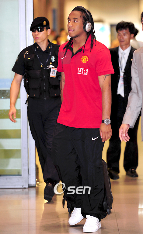 박지성이 활약하고 있는 잉글랜드 프리미어리그의 맨체스터 유나이티드가 24일 서울월드컵경기장에서 벌어질 FC 서울과의 친선 경기를 위해 한국을 방문했다. EPL서 세 해 연속 리그 우승을 차지한 맨유는 2007년에 이어 한국을 두 번째 방문했다. 맨유의 안데르손이 음악을 들으며 공항 입국장을 나서고 있다./인천공항=손용호 기자spjj@osen.co.kr