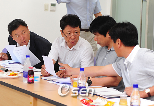 정해성(51) 국가대표팀 수석코치가 최근 부쩍 마음을 쓰고 애를 태우는 이유는 무엇일까. 정 코치는 지난 22일 컵대회 8강 2차전 FC 서울과 인천 유나이티드의 경기를 관전하기 위해 인천월드컵경기장을 찾은 자리서 고심 중인 속내를 털어 놓았다. 정 코치를 노심초사하게 만드는 것은 다름 아닌 경기 일정과 해외파 선수들. 대표팀은 오는 8월 12일 국내서 파라과이와 평가전을 치르는 데 이에 4일 앞서 한일 프로축구 올스타전인 조모컵2009가 열린다. 이에 정 코치는 "파라과이전은 2010남아공월드컵 본선 확정 후 갖는 첫 평가전이기 때문에 중요하다. 하지만 조모컵에 8~9명의 대표팀 선수들이 참가할 것으로 보이며 한일전이라는 특수성 때문에 선수들의 의욕이 앞서 자칫 부상을 당할까봐 걱정된다"고 말했다. 조모컵 명단에는 기성용(서울) 이운재(수원) 최태욱(전북) 김정우(성남) 김영광(울산) 김형일(포항) 유병수(인천)를 비롯해 대표팀 승선이 유력한 이동국(전북) 등 다수가 포함됐기 때문에 우려의 목소리를 높일 법도 하다. 이어 정 코치는 해외파 선수들이 자칫 주전 경쟁서 밀려 컨디션 저하로 이어지지 않을까 걱정했다. 정 코치는 "해외파 선수더라도 주전으로 뛰는 것이 중요하다. 대표팀 합류시 주전으로 나서는 선수들은 눈빛부터 다르지만 벤치만 지키다 오는 선수들은 자신감이 부족해 보이고 눈치를 본다"고 말했다. 특히 정 코치는 "조원희는 소속팀에서 자리가 없는 것 같아 우려된다. 이영표는 독일서 사우디아라비아로 잘 옮긴 것 같다"는 의견을 내놓았다. 대표팀의 해외파인 조원희(위건) 박지성(맨유) 박주영(모나코) 김동진(제니트) 오범석(사마라) 신영록(부르사스포르) 등 해외파 선수들은 소속팀서 치열한 주전 경쟁을 펼치고 있다. parkrin@osen.co.kr 정해성 코치(왼쪽에서 두 번째)가 기술위원회서 대표팀 코칭스태프와 상의하는 모습.