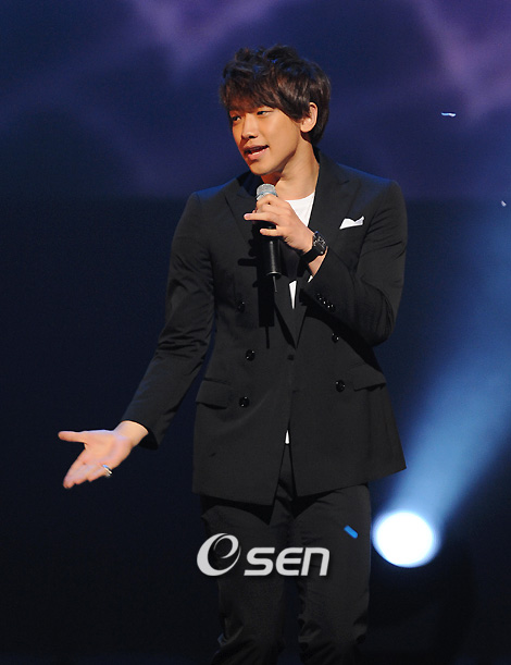 가수 겸 연기자인 만능 엔터데이너 비(본명:정지훈)가 아시아투어를 앞두고 26일 경희대 평화의 전당에서 '2009 Rain’s global Fan Meeting in Seoul'로 아시아 각지에서 모여든 3천여 팬들을 열광시켰다, 방송인 김제동의 사회로 'Rain Theater' 이라는 주제로 무대를 극장식으로 대형 스크린을 설치해 그 동안 보지 못했던 비의 미공개 파일 영상과 토크 형식으로 꾸며졌다. 비가 무대에서 열창을 하고 있다./김영민 기자ajyoung@osen.co.kr