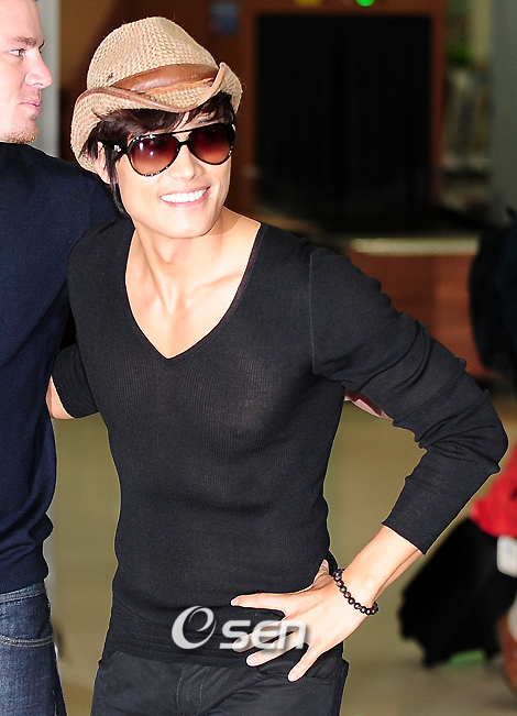 영화 '지.아이.조 : 전쟁의 서막 (감독 스티븐 소머즈ㆍ이하 지 아이 조)'의 배우 이병헌, 채닝 테이텀, 스티븐 소머즈 감독이 한국 프로모션을 위해 28일 저녁 김포공항을 통해 입국했다. 영화 '지.아이.조'는 가공할 최첨단 무기로 인류를 위협하는 강력한 테러 집단 ‘코브라’ 군단과 그에 맞서는 전세계 최고의 엘리트로 구성된 최강 특수 군단 '지.아이.조'의 활약을 그린 액션 블록버스터 영화이다. 또한 이병헌의 본격적인 할리우드 진출작으로 이 작품에서 유창한 영어 대사와 화려한 액션 연기를 바탕으로 악당 코브라 군단 소속의 스톰 쉐도우 역을 맡았다. 이들은 내일 오전 서울 장충동 신라호텔에서 진행되는 기자간담회를 시작으로 각종 인터뷰 등 공식 일정을 소화한다. 이병헌이 입국하며 환하게 웃고 있는 가운데 몸의 굴곡이 옷 위로 살짝 비치고 있다./김포공항=민경훈 기자 rumi@osen.co.kr
