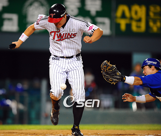 4일간의 짧은 올스타 휴식기를 끝내고 맞이하는 첫 후반기 '2009 CJ 마구마구 프로야구' LG 트윈스와 삼성 라이온즈의 3연전 경기가 28일 오후 잠실구장에서 벌어졌다. 6-2로 뒤지던 6회말 LG 공격, 1사 1루 LG 최동수의 우전 안타 때 우익수 강봉규의 3루 악송구가 빠지자 1루주자 이진영 홈으로 쇄도하고 있다../잠실=윤민호 기자ymh@osen.co.kr