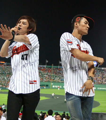 꽃미남 남성듀오 알트리퍼(R.TRIPPER)가 30일 사직 KIA에서 시구 행사와 공연을 펼쳤다. 알트리퍼(R.TRIPPER)는 Round Tripper 의 줄임말로 '홈런'이란 뜻의 야구속어와 동일하며 이들은 데뷔 전부터 롯데 팬들의 야구 사랑과 열정에 반한 열혈 롯데 팬으로 데뷔 후 방송 외 첫 행사 장소로 롯데 홈경기가 열리는 사직구장 방문을 희망했다. 슈퍼 주니어의 김희철을 닮은 꽃미남 멤버 조이가 맡고 시타는 중학 시절까지 야구 선수로 활약한 바 있는 더블유돕(W.dop)이 나섰다. 롯데 자이언츠 제공.