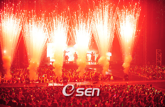 아이돌 그룹 ss501의 콘서트 '아시아투어 in 서울, 페르소나(THE 1st ASIA TOUR PERSONA IN SEOUL)'가 1일 저녁 서울 올림픽공원 체조경기장에서 열렸다. 8월 1~2일, 이틀 동안 열리는 이번 공연은 데뷔 4년에 만에 처음으로 개최하는 아시아 투어의 시작을 알리는 공연이다. 이번 공연을 시작으로 정규2집 활동 후 4개월간 일본, 대만, 홍콩, 태국, 중국, 말레이시아, 싱가폴 등을 포함한 10개국 총 15회의 공연이 예정되어 있다. 주요컨셉인 페르소나의 컨셉과 맞게 이번 서울콘서트에서는 지금까지의 SS501의 모습 이외에도 멤버 각자의 개인 퍼포먼스를 비롯하여 페르소나의 컨셉과 맞는 다양하고 새로운 퍼포먼스가 공존하는 열정적인 무대들을 선보였다. 또한 이 자리에서 SS501은 8월 중순에 발매예정인 정규2집 앨범의 수록곡 중 4곡의 신곡 발표와 더불어 타이틀곡 뮤직비디오를 공개하는 등 팬들을 위해 다양한 프로그램들을 선물했다. SS501이 공연을 할때 불꽃이 터지고 있다./민경훈 기자 rumi@osen.co.kr