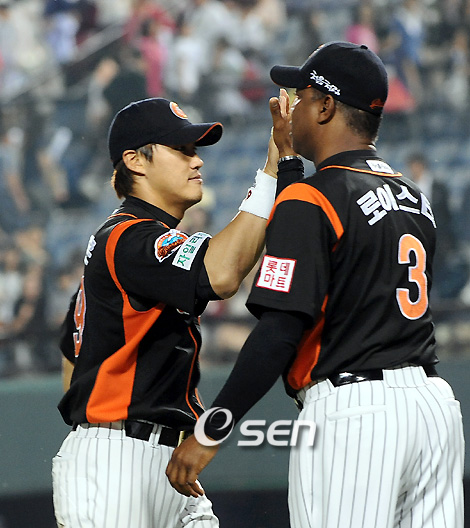 '타격 선두' 홍성흔을 바라보는 로이스터 감독의 시선