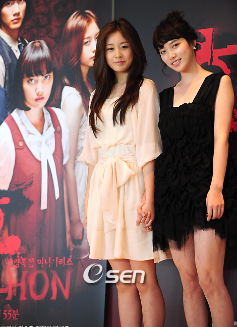 MBC 납량특집 미니시리즈 '혼'의 제작보고회가 3일 주연배우 이서진 임주은 이진 박건일 지연 등이 참석한 가운데 일산 MBC 드림센터에서 열렸다. 드라마는 억울하게 죽은 혼이 빙의된 여고생의 힘을 빌려 악을 응징하던 프로파일러가 자신이 결국 악마의 힘에 끌려 들어가는 내용을 담은 드라마다. 드라마에서 쌍둥이로 나오는 임주은(오른쪽) 지연이 포토타임을 갖고 있다. /일산=손용호 기자spjj@osen.co.kr
