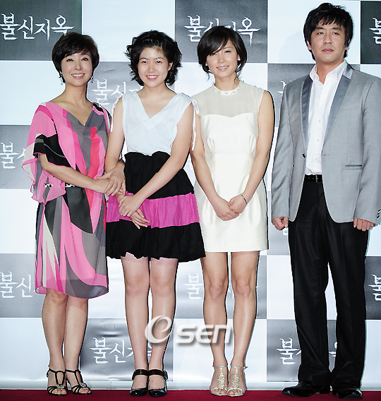남상미, 류승룡, 김보연, 심은경이 출연하고 이용주 감독이 메가폰을 잡은 미스터리 공포 영화 '불신지옥' 의 언론 배급시사회가 4일 서울 동대문 메가박스에서 열렸다. 오는 13일 개봉 예정인 이 영화는 신들린 동생의 실종 이후 시작된 이웃 사람들의 죽음, 그 뒤에 숨겨진 비밀을 그린 작품이다. 한국 영화 최초로 무속신앙과 종교라는 소재를 공포영화에 접목시킨 독특한 내용과 호러퀸 남상미와 충무로 연기파 배우 류승룡, 신들린 소녀 소진 역할을 맡은 심은경 등 신뢰감을 주는 배우진에 장영남, 문희경 등 연극무대에서 실력을 쌓은 조연배우들의 연기가 더해져 개봉 전부터 많은 관심을 받고 있다. 기자회견을 마치고 주연배우 김보연 심은경 남상미 류승룡이 포토타임을 갖고 있다./민경훈 기자 rumi@osen.co.kr