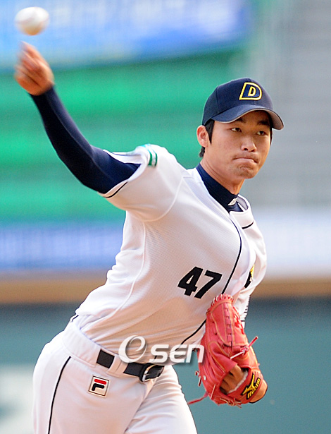 "롯데 전서 데뷔 첫 승 거둬서 그런지 편한 듯 하다". 아쉬움이 있었지만 그래도 호투라고 부르기에 충분했다. 올 시즌 유력한 신인왕 후보 중 한 명으로 떠오르고 있는 홍상삼(19. 두산 베어스)이 데뷔 이후 최고의 쾌투를 선보이며 시즌 9승(2패, 4일 현재)째를 따냈다. 홍상삼은 4일 마산 구장서 벌어진 롯데 자이언츠와의 경기에 선발로 등판, 6이닝 동안 총 91개(스트라이크 58개, 볼 33개)의 공을 던지며 3피안타(탈삼진 9개, 사사구 2개) 무실점으로 시즌 9승을 따냈다. 선발진이 취약한 두산 특성 상 홍상삼의 놀라운 활약은 더없이 팀에 도움이 되었다. 경기 후 홍상삼은 "커브를 평소보다 많이 던졌고 전체적인 변화구-직구 제구가 잘되었다"라며 경기를 평했다. 특히 홍상삼은 이날 승리로 롯데 전서만 4승(무패)을 거두며 새로운 롯데 킬러로 우뚝 섰다. 그에 대해 묻자 홍상삼은 "롯데 전에서 데뷔 첫 승(5월 1일 5이닝 1실점)을 거둬서 그런 지 롯데 원정서는 마음이 편한 것 같다"라며 "용덕한(28) 선배가 마스크를 쓰고 앉아 있으면 희한하게 더 편하다"라며 안방마님에 대한 고마움을 표했다. 홍상삼은 현재 팀 동료 이용찬(20), KIA 신인 내야수 안치홍(19) 등과 신인왕좌를 놓고 다투고 있다. 그에 대해 묻자 홍상삼은 난감해하며 "신인왕 욕심에 대해 지금 이야기하기는 시기상조다"라며 손을 가로 저었다. 원정 첫 경기 승리를 거둔 김경문 두산 감독은 "홍상삼이 마운드에서 안정된 피칭을 펼쳤고 야수들이 집중력 있게 적극적으로 공격한 것이 승리의 요인이다"라며 선수들에 공을 돌렸다. 반면 제리 로이스터 롯데 감독은 "좋은 공격으로 득점 루트를 찾아야 추격전을 벌일 수 있다"라며 반성점을 찾았다. 양 팀은 5일 선발 투수로 각각 강영식(28. 롯데)과 김선우(32. 두산)를 예고했다. farinelli@osen.co.kr