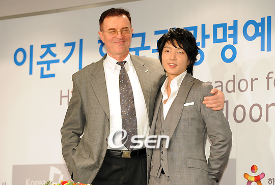 배우 이준기의 한국관광공사 명예홍보대사 위촉식이 5일 오후 한국관광공사 본관에서 열렸다. 영화 '왕의 남자' 등을 통해 스타덤에 오른 이준기는 5월 중국에서 열린 두 차례 콘서트를 통해 1만명, 7월 일본 콘서트에서 9,000명을 동원하는 등 아시아권에서 인기가 높다. 위촉식에 참석한 이준기와 한국관광공사 이참 사장이 포토타임을 갖고 있다./윤민호 기자ymh@osen.co.kr