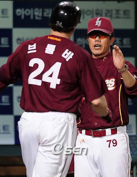 [OSEN=박종규 객원기자] 부진에 빠진 브룸바, 그래도 그는 여전히 히어로즈의 4번 타자라는 신뢰를 잃지 않았다. 5일 현재 홈런부문 단독 선두를 달리고 있는 타자는 클리프 브룸바(35)이다. 지난 6월 11일 목동 KIA전에서 17호째를 날려 선두를 탈환한 이후 2개월 가까이 지켜오고 있다. 24홈런으로 22홈런의 로베르토 페타지니(38, LG)에 여전히 앞서있다. 이 정도면 ‘독주’ 라고 부를 수도 있지만, 속사정은 그렇지 않다. 7월부터 브룸바가 극심한 타격 슬럼프에 빠져있기 때문이다. 페타지니 역시 페이스가 떨어진 데다 손가락과 발등 부상이 겹쳐 결장이 불가피하다. 브룸바는 6월까지 무서운 기세로 방망이를 돌렸다. 홈런과 타점 부문에서 선두를 달리며 최고의 4번 타자로 자리매김했다. 지난 2003년 이승엽 이후 6년 만에 40홈런 달성도 바라보고 있었다. 그러나 7월 한 달 동안 브룸바는 2할7리의 타율에 1홈런 10타점으로 주춤했다. 유일한 1홈런은 25일간의 침묵을 깨고 지난달 22일 목동 삼성전에서 추가한 것이다. 이후로는 홈런포를 쏘아 올리지 못했다. 페타지니의 부진 덕분에 홈런 1위는 지키고 있지만, 타점 부문에서는 4위(73타점)로 밀려났다. 최근에는 안타를 기록하기는 하지만 예전만큼의 타구를 생산하지 못하고 있다. 배트 중심에 맞아 힘이 실리기보다는 빗맞은 타구가 많다. 3번 타자로 나서는 이택근은 브룸바의 부진 때문에 부담을 가지고 타석에 들어서고 있다. 이러한 상황에서도 김시진 감독은 “브룸바는 타격감을 잡으면 2할대 후반이나 3할 언저리를 기록할 타자다” 라며 변함없는 믿음을 드러냈다. 중심을 잡아줄 타자는 브룸바밖에 없다는 생각이다. “브룸바가 부진하다고 해서 4번 타자를 바꿀 생각은 없다. 아파서 결장한다면 몰라도 타순에 변화를 주면 안 된다” 고 밝힌 김 감독은 “브룸바가 4번 자리에서 중심을 잡아주지 않으면 앞뒤가 다 무너진다” 고 강조했다. 김 감독은 상하위 타선에 대해서 “상위 타선이 흔들리면 하위 타선도 영향을 받는다. 6~9번이 쉬어가는 타순이 될 가능성도 있다. 그래서 고정적인 타순이 필요하다” 라고 설명했다. 이것이 덕 클락-황재균-이택근-브룸바로 이어지는 상위 타선을 꾸준히 내세우는 이유다. 브룸바의 부진에 대해서는 “타격감이 떨어져 라인업에서 제외하고 2군으로 보낸다면 퇴출 수순인 셈이다. 그래서 결정이 쉽지 않다” 는 견해를 드러낸 뒤 “다른 팀들도 4번 타자가 부진하다고 해서 바꾸는 경우는 없다” 고 덧붙였다. 이명수 타격코치도 조급한 마음 없이 지켜보고 있는 중이다. “최근 타격 밸런스가 떨어졌다” 는 사실을 인정한 이 코치는 “상체가 빨리 열려서 유인구에 방망이가 쫓아나간다. 그래서 바깥쪽 공을 치지 못한다” 고 지적했다. 해결책에 대해서는 “경기 비디오를 보고 조금씩 수정해나갈 계획이다. 자세가 안 좋아도 좋다고 해야 스스로 심리적 안정을 찾을 수 있다” 는 생각을 내비쳤다. 브룸바는 지난해 13홈런 61타점으로 이름값을 해내지 못했다. 고질적인 아킬레스건 부상 때문이었다. 그런데도 히어로즈는 브룸바를 믿고 올시즌 재계약한 바 있다. 최근 모히칸 스타일로 머리를 밀어 부활 의지를 드러낸 브룸바. 히어로즈의 믿음에 보답해 다시 홈런포 행진을 시작할 수 있을까.