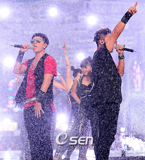 'Mnet 엠카운트다운' 생방송이 6일 오후 경기도 군포시 시민운동장에서 열렸다. 채연과 김준의 더블 MC로 진행된 이 날 엠카운트다운에서는 최근 데뷔한 6인조 신인 여성 그룹 '티아라'의 멤버 효민, 소연, 은정이 각각 여성 아이돌 그룹 'SES'의 바다, 유진, 슈로 깜짝 변신을 했다. 바다, 마이티마우스, 박혜경의 화려한 첫 컴백 무대와 함께 최근 엉덩이춤으로 큰 화제를 모으고 있는 '카라'와 한층 더 섹시한 모습으로 돌아온 '브라운아이드걸스, '드렁큰타이거, 아웃사이더, FT아일랜드, 김준, 원투 등 인기 가수들이 총 출동해 화려한 무대를 선보였다. 원투가 노래 '별이 빛나는 밤에'를 부를때 무대에서 물폭탄이 터지고 있다./군포=민경훈기자 rumi@osen.co.kr