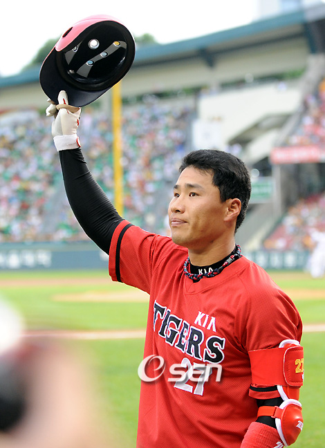 [OSEN=잠실, 박종규 객원기자] “타점왕에 대한 욕심이 없다면 거짓말일 것이다”. KIA가 6일 잠실 LG전에서 막강한 방망이를 앞세워 7연승을 달렸다. 장단 16안타를 터뜨리며 11득점을 올리는 가공할 공격력이었다. 이용규-김원섭-홍세완-최희섭-김상현-장성호로 이어지는 1~6번 타자들이 모두 멀티히트를 기록할 정도로 누구하나 할 것 없이 쾌조의 타격감을 과시했다. 이날 3루수 겸 5번 타자로 선발 출장한 김상현은 불방망이 대열에서 선제 홈런포의 수훈을 세웠다. 5타수 2안타 3타점 1득점의 활약으로 7경기 연속 안타 행진을 이어갔다. 김상현은 1회초 2사 1,3루의 기회에서 첫 타석에 들어섰다. LG 선발 심수창의 폭투로 1점을 얻은 뒤 계속된 볼카운트 0-2 상황에서 김상현은 3구째 높은 공을 놓치지 않았다. 그대로 끌어당긴 타구는 오른쪽 담장을 넘어가는 투런포로 연결됐다. KIA가 3-1로 앞서던 2회에도 김상현은 도망가는 타점을 올렸다. 최희섭의 우전안타로 1점을 얻은 뒤, 1사 1,2루 상황에서 김상현은 좌익수 왼쪽에 떨어지는 2루타를 터뜨렸다. 5-1까지 앞서가며 초반 주도권을 잡은 KIA였다. 수비에서도 만점 활약을 펼친 김상현은 경기 후 “부담 없이 타격에 임하다보니 좋은 결과가 나오는 것 같다” 며 맹타의 비결을 밝혔다. 계속해서 “테이블 세터들과 (최)희섭이형이 루상에 자주 나가다 보니 자연스럽게 타점 기회가 생기는 것 같다” 고 말했다. 81타점째를 올려 타점 부문 선두에 오른 김상현은 “타점왕에 대한 욕심이 없다면 거짓말일 것이다. 하지만 타점에 신경을 쓰다 보면 타격 밸런스가 무너질 것이다. 지금처럼 차근차근 열심히 타격 임하겠다” 며 의지를 드러냈다. 승장 조범현 감독은 “선발 윤석민이 잘 던져줬다. 타자들이 기회에서 집중력을 발휘해 득점으로 잘 연결했다” 며 선수들을 칭찬했다. '2009 CJ 마구마구 프로야구' LG 트윈스와 KIA 타이거즈 경기가 6일 잠실 경기장에서 열렸다. 1회초 2사 2루 김상현 우월투런 홈런을 날리고 홈인 관중에게 인사를 하고 있다./잠실=김영민 기자ajyoung@osen.co.kr