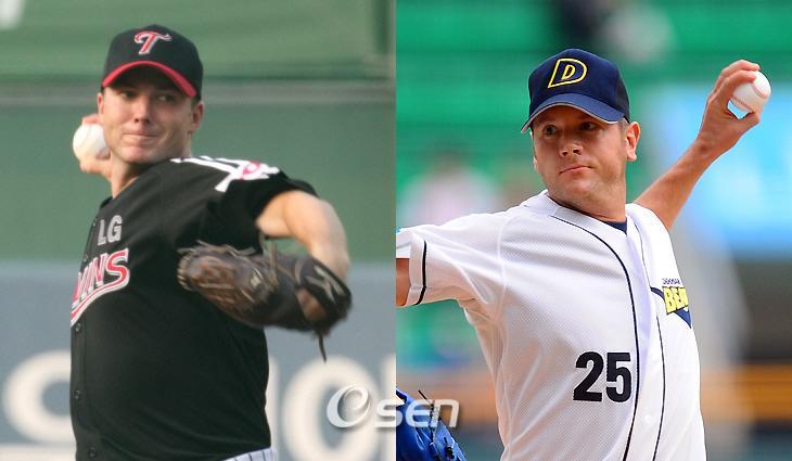 [OSEN=박종규 객원기자] 존슨-니코스키, 대체 외국인 선수의 ‘눈도장 경쟁’ 이 펼쳐진다. 3연승의 두산 베어스와 7연패의 LG 트윈스가 잠실벌 맞대결을 펼친다. 현재 양 팀의 처지는 다르지만, 라이벌 의식은 여전하다. 7위 LG가 2위 두산에 상대전적 8승 4패로 앞서있는 만큼 치열한 승부가 예상된다. 최근 두산은 선발 투수들이 힘을 내면서 안정된 경기를 펼치고 있다. 반면 LG는 선발 투수들이 뭇매를 맞아 초반부터 상대에 주도권을 내주는 경기가 많았다. 따라서 7일부터 이어지는 주말 3연전에서는 선발 싸움이 가장 중요하다. 7일 경기에 LG는 제레미 존슨(27), 두산은 크리스 니코스키(36)를 선발 투수로 내세웠다. 대체 외국인 선수끼리의 맞대결인 셈이다. 어느 팀이 성공적인 영입을 했는가에 대해 직접적인 비교도 가능하다. 존슨은 지난 1일 한국 무대에 첫 선을 보였다. 목동 히어로즈전에 선발로 나서 6⅓이닝 7안타 5사사구 6삼진 3실점으로 제몫을 다했다. 여러 차례 위기가 있었으나, 당황하지 않고 후속 타자들을 잡아냈다. 김재박 감독은 “퀵 모션이 느리지 않고 구종이 다양하다. 위기가 많았는데 잘 넘겼다” 며 만족감을 드러냈다. 존슨 자신은 “역시 한국 타자들은 맞추는 능력이 뛰어나고, 선구안이 좋은 데다 실투도 놓치지 않는다” 며 긴장감을 늦추지 않았다. “타자들을 윽박지르기 보다는 변화구와 제구력 위주로 승부할 것이다” 라는 존슨의 말처럼 두산 타자들은 신중한 자세로 임해야 할 것으로 보인다. 워낙 맞추는 능력이 뛰어난 타자들이 많아 한 번 공략에 성공하면 금방 적응할 수도 있다. 니코스키는 두산으로 유니폼을 갈아입은 이후 5번째 선발 등판에 나선다. 김경문 감독의 믿음 속에 그동안 드러냈던 문제점을 극복하며 점차 나아지고 있는 중이다. 지난 2일 잠실 SK전에서 왼쪽 종아리 근육통으로 인해 마운드에서 내려왔지만, 휴식을 취한 뒤 선발 로테이션을 지킬 수 있게 됐다. 최근 LG가 7연패에 빠져있기는 하지만 언제든 폭발할 가능성이 있다. 니코스키는 LG의 강타선을 경계하며 정교한 제구력을 발휘해야 승산이 있다. 존슨-니코스키