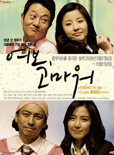 배우 박준규와 오정해 주연의 연극 '여보 고마워'가 오는 21일부터 10월 11일까지 충무아트홀 블랙에서 공연된다. 올 상반기 최고 인기 연극 '친정엄마와 2박3일'의 고혜정 작가가 극본을 맡아 더욱 기대를 모으는 작품. '여보 고마워'는 사회적으로 잘나가는 아내와 몇 년째 백수로 살림을 도맡은 남편, 결혼 10년차 부부의 공감 가는 결혼 이야기를 눈물과 웃음으로 풀어낼 작품이다. 박준규와 오정해 외에도 개성파 배우 김형범과 신동미가 더블 캐스팅돼 또 다른 매력을 선사할 예정. 이번 작품으로 9년 만에 연극 무대에 서는 박준규는 "가족의 소중함을 전하는 데 부족함이 없는 작품이라 선뜻 배역을 받아들였다"며 "무능력한 남자로 가정을 꾸려간다는 것은 힘든 일이지만 가정을 지킬 수 있는 힘은 결국 가족 구성원 내부에 있다는 것을 말하고 싶다"고 공연에 임하는 소감을 전했다. issue@osen.co.kr 제이앤디에스(주) 제공.