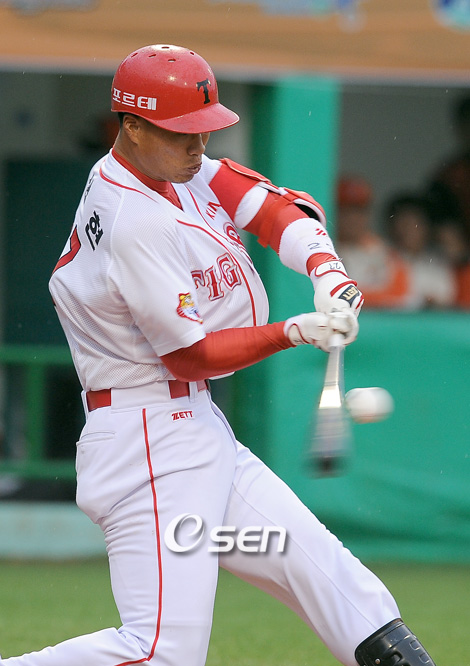 7시즌만에 선두로 올라선 KIA 타이거즈의 연승행진이 그칠 줄 모르고 있다. KIA는 8일 군산 월명야구장에서 열린 2009 CJ 마구마구 프로야구 SK와의 홈경기에서 김상현의 3연타석 홈런포를 앞세워 9-6으로 완승을 거뒀다. 지난달 30일 사직 롯데전 이후 8연승 행진이다. 김상현은 이날 홈런 3개 포함 3안타 5타점 3득점을 기록했다. 이로써 KIA는 시즌 56승(37패 4무)째를 거두며 5할7푼7리의 시즌 승률을 기록, 단독선두자리를 굳게 지켰다. 특히 3위 SK에게 41패(55승 5무)째를 안겨 시즌 승률을 5할4푼5리로 끌어내렸고 실질적인 다승 선두로 올라섰다. 반면 SK는 연패에 빠지며 선두 재탈환에 제동이 걸렸다. KIA와의 상대전적에서도 5승 6패 1무로 뒤지게 됐다. KIA는 김상현의 홈런포를 앞세워 SK를 거세게 밀어붙였다. 김상현은 최희섭의 희생플라이로 선취점을 뽑은 1회 1사 1, 2루에서 스리런포를 터뜨렸다. SK 선발 고효준으로부터 높게 제구된 포크볼을 좌측 담장 밖으로 날려보냈다. 이어 김상현은 5-2로 추격을 당하던 3회 SK 좌완 정우람으로부터 중월솔로포를 가동했다. 볼카운트 1-1에서 슬라이더를 통타, 외야관중석 중간으로 총알 같은 타구를 날려보냈다. 비거리 130m짜리 대형홈런포. 8-2로 앞선 5회에는 사이드암 이한진으로부터 장외 솔로홈런포를 쏘아올렸다. 볼카운트 2-1에서 싱커를 잡아당겨 왼쪽 경기장 밖으로 타구를 날려보냈다. 3연타석 홈런은 LG 페타지니, KIA 최희섭에 이은 올 시즌 3번째. 프로 통산 28번째 기록이다. 물론 김상현 개인적으로는 첫 경험이다. SK는 4-9로 뒤진 7회 거의 모든 주전들을 뺀 상태에서도 2득점하며 추격의지를 굽히지 않았다. 그러나 구톰슨에 이어 손영민-박경태-곽정철-유동훈으로 이어진 KIA의 철벽 불펜진을 무너뜨리지 못한 채 무릎을 꿇었다. 마무리 유동훈은 시즌 12세이브(5승 2패)에 성공했다. KIA 선발 구톰슨은 6이닝 동안 7피안타 2볼넷 2탈삼진 4실점, 시즌 11승(3패)을 기록했다. 다승 부문 공동 2위로 올라선 것은 물론 지난달 8일 광주 LG전 이후 4연승이다. SK 선발 고효준은 ⅓이닝 3피안타(1피홈런) 3볼넷으로 5실점, 시즌 최악 피칭으로 시즌 10패(8승 2세이브)째를 당했다. 한편 이날 8회에는 투수 윤길현이 타석에 들어서기도 했다. 지난 6월 25일 광주경기에서 최정을 상대했던 투수 곽정철이 윤길현을 상대, 2루수 땅볼로 처리해 흥미를 더했다. letmeout@osen.co.kr 김상현.