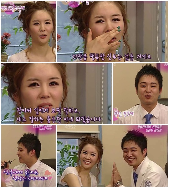 예비신부 장영란이 감격의 눈물을 흘렸다. 8일 방송된 KBS 2TV '연예가중계'에서는 장영란이 한의사인 예비신랑 한 씨가 근무하는 병원을 찾아 행복한 연인의 모습을 공개했다. 장영란이 "웃는 모습이 소박하고 맑다. 딱 제 이상형이다!"며 자랑한 예비신랑 한 씨는 서글서글한 외모와 순한 첫 인상이 눈에 띄는 훈남이었다. 지난해 SBS '스타킹'에 출연해 장영란을 보자마자 사랑에 빠졌다는 예비신랑 한 씨는 "군계일학이었다. 남규리가 옆에 있는데도, 남규리 씨께는 미안하지만 더 예쁘고 좋아보였다"며 속내를 감추지 않았다. 또 이날 장영란은 예비 시부모님께 하고 싶은 말을 전하라는 리포터의 말에 "훌륭하게 키워주신 창이 씨를 남편으로 맞게 돼서 너무 감사하다. 나만큼 행복한 신부는 없을 것.."이라고 말하던 도중 감정에 복받쳐 눈물까지 보였다. 이어 "옆에서 보필 잘하고 내조 잘하는 아내가 되겠다. 지켜봐주시고.. 예쁘게 잘 살겠다"고 덧붙이며 울먹여 행복한 예비신부의 모습을 보여줬다. 그런가하면 한 씨 역시 "영란이를 제게 주셔서 감사하다. 영란이 눈에 눈물 나지 않도록 잘 살겠다"고 예비 장인, 장모께 인사를 전하더니 즉석에서 그녀를 향한 사랑의 세레나데까지 불러주며 영원한 사랑을 약속하기도 했다. 한편 장영란과 3살 연하의 예비신랑 한 씨는 오는 9월 6일 오후 1시 서울 여의도 63빌딩 2층 국제회의실에서 백년가약을 맺는다. issue@osen.co.kr