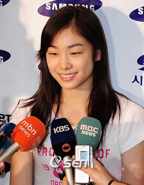 캐나다에서 전지훈련 중이던 '피겨' 김연아(19·고려대)가 '삼성 애니콜 하우젠 아이스올스타즈 2009' 참가를 위해 11일 새벽에 인천 공항을 통해 입국했다. 오는 14일부터 16일 동안 열리는 서울 올림픽 체조 경기장에서 열리는 이 아이스 쇼에서 김연아는 그녀의 '우상'인 미셸 콴과 한 무대에 서게 되어 개최 전부터 큰 화제를 낳고 있다. 김연아가 공항 입국장 앞에서 인터뷰중 환하게 미소짓고 있다./인천공항=민경훈 기자 rumi@osen.co.kr