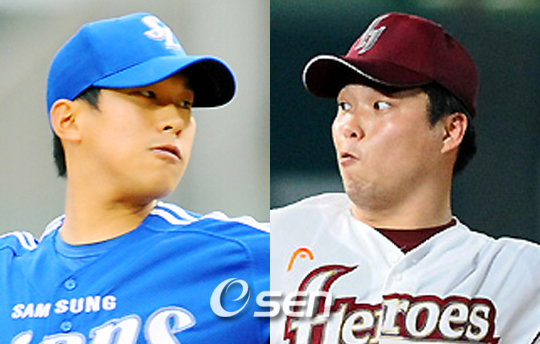 삼성 라이온즈 '신(新) 에이스' 윤성환이 4강 진입의 교두보를 마련하기 위해 11일 목동 히어로즈전에 선발 출격한다. 10일 현재 5위를 기록 중인 삼성은 6위 히어로즈와 3경기차에 불과하다. 희미한 4강 불씨를 되살리기 위해 사력을 다하는 히어로즈를 반드시 따돌려야 하는 입장이다. 팀내 선발진 가운데 가장 안정된 구위를 자랑하는 윤성환은 삼성 투수 중 맨 먼저 10승 고지를 밟았다. 지난 6월 27일 두산전(7이닝 4실점) 이후 6연승을 질주 중인 윤성환은 히어로즈를 꺾고 7연승 달성과 더불어 4강 복귀를 발판을 마련할 태세. '필승 계투조' 정현욱과 권혁이 잦은 등판 속에 피로를 호소하는 상황 속에서 최대한 많은 이닝을 소화해야 한다. 삼성은 멀티 플레이어 조동찬의 부상 공백이 크다. 9일 사직 롯데전 도중 상대 포수 최기문과 충돌해 왼쪽 무릎 부상을 입은 조동찬은 3주 가량 결장이 불가피한 상태. 팀내 도루 1위를 질주 중인 조동찬이 빠져 기동력이 크게 떨어졌다. 현재로서 신명철이 톱타자로 나설 가능성이 높다. 좌타 거포 채태인의 불방망이도 기대해볼 만하다. 채태인은 최근 5경기에서 타율 4할2푼1리 8안타 2홈런 5타점 4득점으로 쾌조의 타격감을 자랑했다. 특히 종으로 떨어지는 변화구에 무기력하게 물러나던 모습이 눈에 띄게 사라졌다. 4강 진출의 희망을 버리지 않은 히어로즈는 4연승에 도전한다. 좌완 선발 마일영이 선발 투수로 마운드에 오를 예정. 5승 7패(방어율 7.08)를 거둔 마일영은 삼성전에서 1승 1홀드를 거뒀지만 10점대 방어율(10.03)이 불안 요소로 작용할 듯. 또한 앞선 5경기에서도 2승(방어율 8.49)을 따냈지만 다소 흔들렸다. what@osen.co.kr 윤성환-마일영.