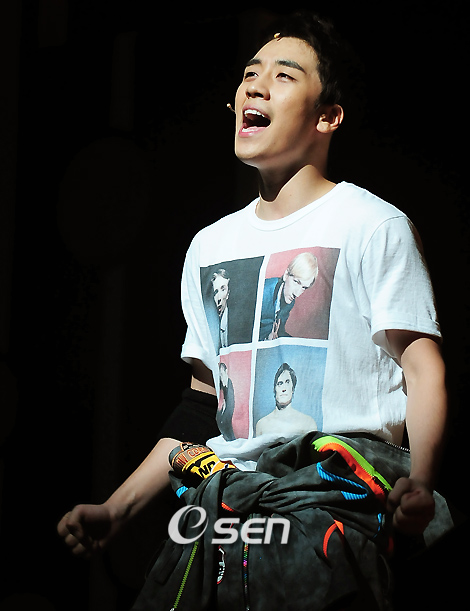 인기그룹 빅뱅의 승리(19)가 주연으로 출연하는 뮤지컬 '샤우팅'의 프레스콜 행사가 12일 오전 서울 서초구 서초동 한전아트센터에서 열렸다. 애초에 빅뱅의 대성(20)이 함께 주연으로 출연하기로 했으나 전날 교통사고로 인해 대성 대신 뮤지컬 배우 강인영이 대신 출연했다. 이 뮤지컬은 스타가 되려는 두 주인공의 꿈과 희망, 노력, 성공을 다룬 내용으로, 수많은 청소년이 연예인이 되고자 하는 시대상을 담고있으며 인기 뮤지컬 배우 홍지민과 주원성도 함께 출연한다. 승리가 멋진 공연을 선보이고 있다./민경훈 기자 rumi@osen.co.kr