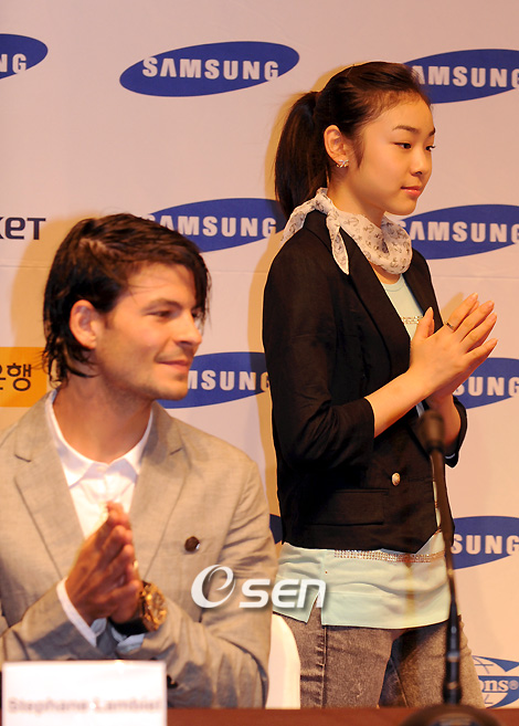 2009 ISU 세계선수권대회 챔피언인 김연아를 비롯한 전세계 피겨챔피언들이 총출동하는 지상 최대의 아이스쇼, '삼성 애니콜-하운젠 아이스 올스타즈 2009'에 앞서 13일 오후 장충동 신라호텔에서 김연아,미셸 콴,스테판 랑비엘,브라인 오셔 코치가 참여한 가운데 기자회견이 열렸다. 김연아 기자회견장에 입장하여 착석을 하고 있다./김영민 기자ajyoung@osen.co.kr