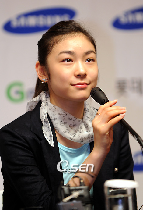 2009 ISU 세계선수권대회 챔피언인 김연아를 비롯한 전세계 피겨챔피언들이 총출동하는 지상 최대의 아이스쇼, '삼성 애니콜-하운젠 아이스 올스타즈 2009'에 앞서 13일 오후 장충동 신라호텔에서 김연아,미셸 콴,스테판 랑비엘,브라인 오셔 코치가 참여한 가운데 기자회견이 열렸다. 김연아가 취재진의 질문에 답변을 하던중 잠시 생각을 하고 있다./김영민 기자ajyoung@osen.co.kr