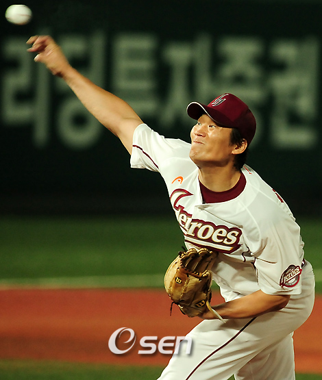 환상의 배터리를 앞세운 히어로즈가 전날 패배를 깨끗이 설욕, 4강 진출의 발판을 마련했다. 히어로즈는 13일 목동구장에서 열린 2009 CJ 마구마구 프로야구 삼성과의 홈경기에서 이날 배터리를 이룬 황두성과 강귀태의 활약 속에 5-0으로 완승을 거뒀다. 이로써 6위 히어로즈는 47승(51패 1무)을 올려 시즌 승률을 4할7푼5리를 기록했다. 전날 결정적인 수비 실책으로 패한 것을 완벽하게 설욕했다. 이 승리로 히어로즈는 4강 진출의 꿈을 계속해서 이어갔다. 반면 삼성은 이날 패하면서 하루만에 다시 떨어졌다. 시즌 52승 51패로 시즌 승률이 5할5리가 돼 이날 KIA의 12연승을 저지한 롯데(54승 52패, 승률 0.509)에 4위 자리를 내준 채 5위로 한계단 내려섰다. 올 시즌 세 번째 선발 마운드에 오른 우완 황두성은 8이닝 동안 5피안타 1볼넷 9탈삼진으로 무실점, 시즌 3승(2패)째를 거뒀다. 시즌 첫 선발승이자 작년 7월 8일 목동 롯데전(6이닝 2실점) 이후 401일만에 거둔 선발승이다. 개인 통산 가장 많은 이닝을 소화했고 탈삼진도 개인 최다에 1개가 부족했을 정도로 나무랄데 없는 피칭이었다. 포수 강귀태는 2회 장타로 황두성의 어깨를 가볍게 해줬다. 클락의 좌중간 안타, 송지만의 우전안타 뒤 도루, 강정호의 볼넷으로 만든 1사 만루에서 우측 담장 상단을 직접 맞히는 2타점 2루타를 날렸다. 이어 히어로즈는 권도영의 중견수 키를 넘기는 2타점 2루타가 이어져 4-0으로 점수차를 벌렸다. 히어로즈는 5회 선두타자로 나선 이택근의 발로 추가점을 올려 사실상 승부에 쐐기를 박았다. 이택근은 박성훈의 폭투로 2루, 도루로 3루로 진루한 뒤 다시 폭투 때 홈을 밟았다. 오재영은 9회 마무리로 나와 실점없이 경기를 매조지 했다. 삼성 선발 배영수는 2⅓이닝 동안 5피안타 1사구 1볼넷으로 4실점한 뒤 강판돼 시즌 12패(1승)째를 기록했다. 지난 5월 3일 문학 SK전 이후 10연패, 작년 7월 22일 광주 KIA전 이후 원정 13연패다. letmeout@osen.co.kr 황두성.