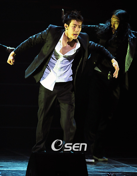 화려하고 파워풀한 안무와 노래실력으로 큰 인기를 얻고 있는 2PM의 첫 팬미팅이 15일 오후 서울 노원구 월계동 광운대학교 문화관 대극장에서 열렸다. 이 자리에는 2PM 팬클럽 '핫티스트(Hottest)' 멤버들을 초청, 다양한 이벤트와 무대를 통해 팬들과 하나되는 시간을 마련했다. 2PM의 재범이 비의 레이니즘을 선보이고 있다./민경훈 기자 rumi@osen.co.kr