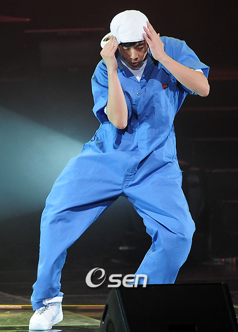 화려하고 파워풀한 안무와 노래실력으로 큰 인기를 얻고 있는 2PM의 첫 팬미팅이 15일 오후 서울 노원구 월계동 광운대학교 문화관 대극장에서 열렸다. 이 자리에는 2PM 팬클럽 '핫티스트(Hottest)' 멤버들을 초청, 다양한 이벤트와 무대를 통해 팬들과 하나되는 시간을 마련했다. 2PM의 우영이 무대 위에서 깜찍한 공연을 선보이고 있다./민경훈 기자 rumi@osen.co.kr