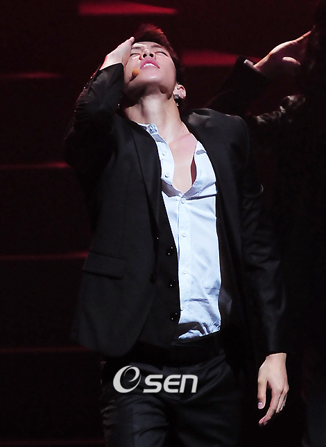 화려하고 파워풀한 안무와 노래실력으로 큰 인기를 얻고 있는 2PM의 첫 팬미팅이 15일 오후 서울 노원구 월계동 광운대학교 문화관 대극장에서 열렸다. 이 자리에는 2PM 팬클럽 '핫티스트(Hottest)' 멤버들을 초청, 다양한 이벤트와 무대를 통해 팬들과 하나되는 시간을 마련했다. 2PM의 재범이 비의 레이니즘을 선보이고 있다./민경훈 기자 rumi@osen.co.kr