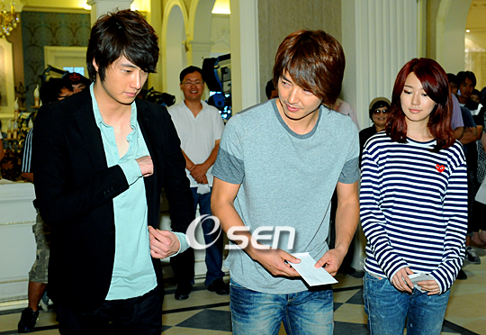 윤은혜 윤상현 정일우 문채원이 주연하는 KBS 수목 드라마 '아가씨를 부탁해' 무사 기원 고사가 16일 오후 경기도 평택시 현덕면 권관리의 스튜디오에서 열렸다. '아가씨를 부탁해'는 궁전 같은 집에 살며 자기 밖에 모르는 공주가 자신의 저택 집사로 들어온 가난한 남자와 얽히며 벌어지는 이야기를 담은 작품이며 19일 저녁 21시 55분 첫 방송 예정이다. 정일우 윤상현 윤은혜가 고사를 지내고 있다./평택=윤민호 기자ymh@osen.co.kr