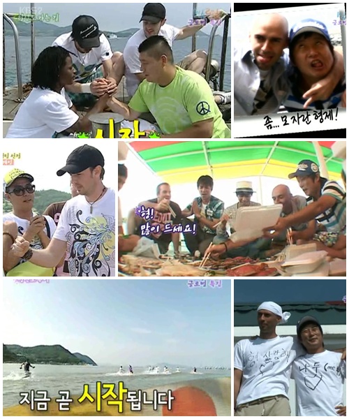 16일 방송된 KBS 2TV 주말예능프로그램 '해피선데이-1박2일'의 '글로벌 특집'에 출연한 외국인 친구들에 시청자들의 관심이 이어지고 있다. 이날 방송은 목적지 청산도까지 가기 위해 완도에 모인 '1박2일' 멤버들과 여섯 외국인 친구들의 첫 만남으로 포문을 열었다. 강호동-인도 출신 니띤, 이승기-일본 출신 아키라, MC몽-미국 출신 스캇, 이수근-루마니아 출신 단, 김C-코트디부아르 출신 와프, 은지원-영국 출신 안드류로 파트너를 이룬 12명의 남자들은 갖가지 게임과 우여곡절 여정을 통해 어느새 하나가 되어갔다. 방송 후 시청자들은 '외국인 친구들'이라는 이색 출연자들에 대한 호기심과 호평을 이어갔다. 시청자 게시판에는 '와프 대박이다! 개그 본능이 철철 넘치는 친구', '승기와 그의 파트너 아키라의 모습, 너무 훈훈했다', '외국인들을 어떻게 섭외한 건지 궁금하다. 매력있고 멤버들과 잘 어울리는 모습이 신기하다'며 관심어린 반응들을 이어갔다. 수근의 파트너가 된 단은 루마니아에서 한국으로 온지 6년째로 비교적 유창한 한국어 실력을 자랑했다. 특히 점심식사 도중 해산물과 묵은 김치를 싸서 먹고 평소 '1박2일'을 즐겨본다며 한국인 못지않은 매력을 풍겨 눈길을 끌었다. 또 승기의 파트너 아키라는 한국에 온지 4개월 밖에 안됐지만 독학으로 한국어를 공부해 온 노력파. 가깝고도 먼 나라 일본으로부터 경제학을 공부하기 위해 온 유학생이라고 소개했다. 지원의 파트너는 영국 맨체스터 출신이지만 완벽한 부산 시민으로 거듭난 스캇. 한국인 아내와 부산에서 산지 3년째라며 유창한 한국어 실력을 뽐냈다. 그런가하면 MC몽의 파트너 스캇은 미국 출신으로 한국에서 영어강사로 일해온 지 어느덧 7년 째. 닭볶음탕과 순대, 떡볶이, 감자탕 등 한국 토종 음식 마니아로 멤버들을 놀라게 했다. 특히 MC몽을 닮은 듯 못 말리는 개그 감각과 오버를 일삼아 시청자들에 큰 웃음을 선사했다. 호동의 친구는 인도 뉴델리 출신의 니띤. IT를 공부하기 위해 날아온 유학생이지만 대한민국의 문화와 매력에 푹 빠졌다며 애착을 드러냈다. 또 김C의 친구 와프는 아프리카 코트티부아르 출신으로 개성 넘치는 외모와 천진난만한 매력으로 시청자들에게도 큰 인기를 끌었다. 아프리카 문화원에서 춤과 노래 등을 가르치고 있다는 와프는 스스럼없는 장난과 눈치작전으로 멤버들과 빠르게 친해졌다. 이날 방송에는 '1박2일' 여섯 멤버와 외국인 친구들이 청산도의 장관을 배경으로 복불복 게임을 하고 물장난을 하는 등 훈훈한 모습을 연출, 재미를 더했다. 또 국적을 초월한 우정을 만들어가는 열두 남자들의 모습에서 뭉클한 감동이 전해져 시청자들의 호평을 받았다. issue@osen.co.kr