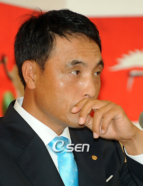 '기록의 사나이' 송진우(43, 한화)가 18일 오후 대전 유성구 봉명동 리베라호텔에서 은퇴 기자회견을 가졌다. 세광고-동국대를 거쳐 지난 1989년 빙그레(한화 전신) 유니폼을 입은 송진우는 개인 통산 200승(2006년 8월 29일 광주 KIA전), 2000탈삼진(2008년 6월 6일 대전 히어로즈전), 3000이닝 투구(2009년 4월 대전 두산전) 등 불멸의 기록을 수립한 바 있다. 송진우가 은퇴기자회견을 갖고 있다./대전=윤민호 기자ymh@osen.co.kr