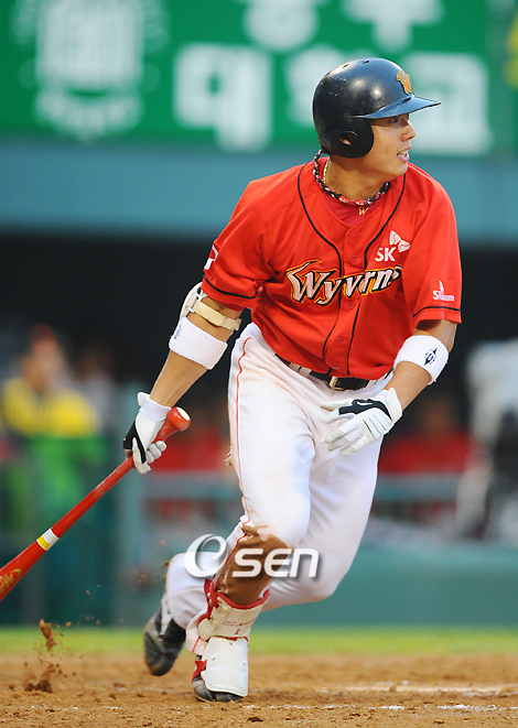 SK가 화끈한 대포를 앞세워 완승을 거뒀다. SK는 18일 사직구장에서 열린 2009 CJ 마구마구 프로야구 롯데와의 원정경기에서 나주환과 박재상의 홈런포 3방을 앞세워 9-4로 대승을 거뒀다. 박재상은 3-3으로 맞선 5회 역전 투런포(시즌 10호 홈런), 8-3으로 승부를 결정짓는 3점포(시즌 11호 홈런)를 연타석에서 터뜨려 최고의 활약을 선보였다. 이 연타석 홈런은 박재상 개인으로는 프로 데뷔 처음이면서 올 시즌에는 30번째(통산 615호) 나온 것이다. 박재상은 이날 홈런 2개 포함 2안타 2득점 5타점을 기록했다. 이로써 시즌 59승째(44패 5무)를 기록한 SK는 승률을 전날 5할4푼2리에서 5할4푼6리로 살짝 끌어올렸다. 반면 롯데는 이날 패배로 지난달 4일 사직경기부터 이어오던 SK전 연승행진을 '4'에서 멈췄다. 4위 자리는 그대로 지켰지만 시즌 54패(56승, 승률 0.509)를 기록, 승률 5할을 위협받게 됐다. 기선 제압은 홈팀 롯데의 차지였다. 롯데는 2회 선두타자 이대호의 좌중간 안타, 가르시아의 중간 담장 맞히는 2루타로 무사 2, 3루를 만들었다. 곧바로 박종윤의 좌익수 희생플라이로 선취점을 뽑은 롯데는 이날 엔트리에 복귀한 강민호의 우중간 안타로 다시 1, 3루 찬스를 이었다. 롯데는 정보명의 좌중간 깨끗하게 가르는 2루타로 2점을 보탰다. 그러자 SK는 3회 나주환의 투런 아치로 추격에 나섰다. 나주환은 선두타자 김연훈이 우전안타로 만든 1사 1루에서 조정훈의 초구 직구(140km)를 받아쳐 좌측 담장을 훌쩍 넘겼다. 나주환은 이 홈런으로 프로 데뷔 후 처음으로 두자리수 홈런을 기록했다. SK는 3-2로 뒤진 5회 정근우의 중전적시타로 동점에 성공했다. 이어 2사 1루에서는 박재상의 좌월 투런포로 전세를 뒤집었다. 박재상은 볼카운트 2-1에서 조정훈의 132km짜리 슬라이더를 밀어넘겼다. 5-3으로 리드하던 7회에는 우월 스리런포를 쏘아올린 박재상의 연타석 홈런으로 사실상 승부를 결정지었다. 볼카운트 1-0에서 역시 조정훈의 직구(140km)를 잡아당겨 우측 관중석에 꽂았다. SK는 8회 중견수 넘기는 정상호의 1타점 2루타로 승부를 결정지었다. 시즌 13승으로 다승 단독 선두를 노리던 SK 선발 송은범은 2회 갑작스런 난조를 보이며 3이닝 8피안타 1볼넷 1탈삼진으로 강판됐다. 4회에도 나섰지만 선두타자 강민호에게 중전안타를 맞고 윤길현과 교체됐다. SK는 송은범 후 윤길현(2이닝)-전병두(4이닝)으로 롯데 타선을 막아냈다. 윤길현은 시즌 2승(3세이브)째를 거뒀고 전병두는 9회 1실점 후 2사 2, 3루 위기까지 몰렸지만 시즌 4세이브(6승 4패)에 성공했다. 롯데 선발 조정훈은 7이닝 동안 7피안타(3피홈런) 3볼넷 7탈삼진으로 8실점, 9패(10승)째를 당했다. 경기 초반 타선이 낸 3점의 리드를 끝까지 지켜내지 못했다. 롯데는 9회 김민성의 우중간 적시타로 1점을 만회하는데 그쳤다. letmeout@osen.co.kr 박재상.