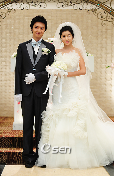 KBS 1TV 일일드라마 '다함께 차차차'(유윤경 김정은 극본, 김성은 김영균 연출)의 박한별(한진경 역)-이중문(이한 역)의 결혼식 장면 촬영현장을 19일 오전 서울 영등포구 당산동 '문화웨딩홀'에서 공개했다. 이 드라마는 피 한 방울 섞이지 않은 두 여자가 '가족'으로 살아가는 모습을 통해 진정한 가족애가 무엇인지를 돌아보게 내용을 담고 있다. 이중문과 박한별이 결혼식장에서 포즈를 취하고 있다./민경훈 기자 rumi@osen.co.kr