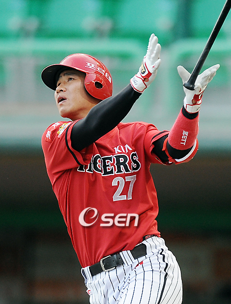 [OSEN=인천, 박종규 객원기자] KIA의 ‘곤잘레스’ 김상현(29)의 홈런 페이스가 급상승하고 있다. 김상현은 23일 문학 SK전에 3루수 겸 5번 타자로 선발 출장, 두 번째 타석에서 시즌 27호홈런을 터뜨렸다. 지난 21일 경기에서 2개의 홈런을 몰아치며 단독 선두로 뛰어오른 뒤, 이틀만에 공동 2위(클리프 브룸바, 최희섭)와 격차를 3개로 벌렸다. 첫 타석에서 유격수 땅볼로 물러났던 김상현은 3회초 1사 주자 없는 상황에서 타석에 들어섰다. 볼카운트 1-1에서 SK 선발 송은범의 낙차 큰 커브가 가운데로 몰린 것을 놓치지 않았고, 이것이 좌중간 담장을 넘어갔다. KIA가 2-0으로 앞서나가는 솔로포였다. 3회말 현재 KIA가 2-0으로 리드하고 있다.
