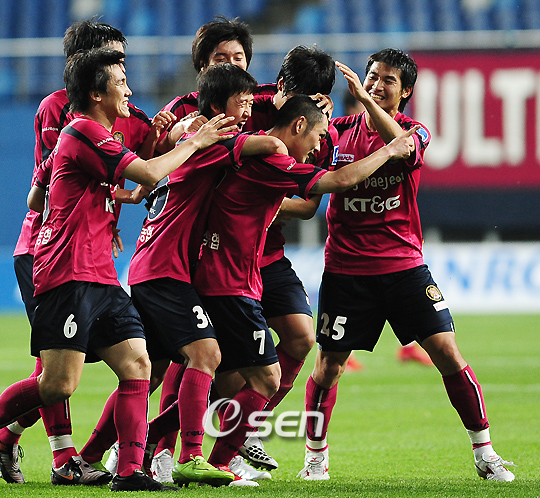 김한섭과 고창현이 연속골을 터트린 대전 시티즌이 3423일 만에 성남 원정 승리를 거두며 징크스 탈출에 성공했다. 대전 시티즌은 23일 성남종합운동장에서 열린 2009 K리그 20라운드 성남 일화와 경기서 김한섭과 고창현의 연속골에 힘입어 2-1로 승리했다. 이날 승리로 대전은 지난 2000년 4월 9일 이후 이어지던 성남 원정 15연패의 사슬을 끊었다. 또 대전은 최근 4경기서 2승2무로 상승세를 타며 중위권 도약을 위한 발판을 마련했고 올 시즌 10경기 만에 원정경기서 승리를 기록했다. 경기 시작 전 왕선재 감독대행은 성남과 전력 차에 대해 확실히 선을 그었다. 성남에 맞붙을 놓기에는 어려움이 많기 때문에 후반 30분까지 수비적인 축구를 구사하겠다는 것. 전반 시작과 함께 대전은 5명이 수비 진영에 포진했다. 김한섭-이윤표-황지윤-양정민-우승제가 성남의 공격을 막아내기 위해 치열한 경기를 펼친 것. 성남은 경기 시작과 함께 김진용이 골키퍼와 일대일 찬스를 맞았지만 최은성의 선방에 막혀 기회를 잡지 못했다. 성남은 대전의 집요한 수비를 뚫기 위해 많은 노력을 시도했지만 큰 성과를 얻지 못했다. 롱패스 연결을 통해 문전에서 기회를 만들었지만 번번이 수비에 막히고 말았다. 역습을 통해 간헐적으로 성남의 수비진을 괴롭히던 대전은 전반 36분 선취점을 뽑아냈다. 대전은 바벨이 상대진영 중앙에서 볼을 인터셉트 한 후 중앙으로 달려들며 역습을 시도했다. 루키 김한섭은 골키퍼 정성룡과 일대일 기회서 침착하게 밀어 넣으며 대전이 1-0으로 앞섰다. 선제골을 얻어맞은 성남은 라돈치치의 강력한 중거리 슈팅으로 만회하기 위해 노력했지만 전반서 골을 기록하지 못하고 후반을 맞을 수 밖에 없었다. 후반 시작과 함께 라돈치치 대신 조동건을 투입한 성남은 다시 일방적인 공격을 시도했다. 전반과 비슷한 경기 양상을 보인 성남은 후반 10분 설상가상으로 정성룡이 레드카드를 받고 퇴장을 당했다. 역습 상황서 달려오던 스테반을 가로막으며 반칙을 범했기 때문. 성남은 한동원을 뺀 후 대기 골키퍼인 정의도를 투입했다. 기회를 잡은 대전은 스테반 대신 '계룡산 루니' 고창현을 투입했다. 후반 14분 고창현은 투입 후 스테반이 얻은 프리킥을 그대로 골대에 작렬하며 2-0으로 스코어를 벌렸다. 성남도 쉽게 당하고 있지 않았다. 한 명이 적은 가운데서도 공격의 고삐를 늦추지 않은 성남은 후반 16분 김성환이 올린 프리킥을 공격에 가담한 수비수 조병국이 머리로 받아 넣으며 한 골을 만회했다. 만회골을 터트린 성남은 후반 26분 김진용 대신 파브리시오를 투입해 공격진을 강화했다. 대전도 알레를 투입해 맞불작전을 통해 승리에 대한 강한 의지를 나타냈다. 성남은 치열하게 대전의 수비를 뚫기 위해 노력했지만 수적 열세에 따른 체력 저하로 어려움이 따를 수 밖에 없었다. 성남은 후반 추가시간 5분 동안 끊임없이 대전의 골문을 위협했지만 득점을 뽑아내지 못하고 대전에 승리를 내주고 말았다. ■ 24일 전적 ▲ 성남 성남 일화 1 (0-1 1-1) 2 대전 시티즌 △ 득점 = 전 35 김한섭 후 14 고창현(대전) 후 16 조병국(성남) 10bird@osen.co.kr