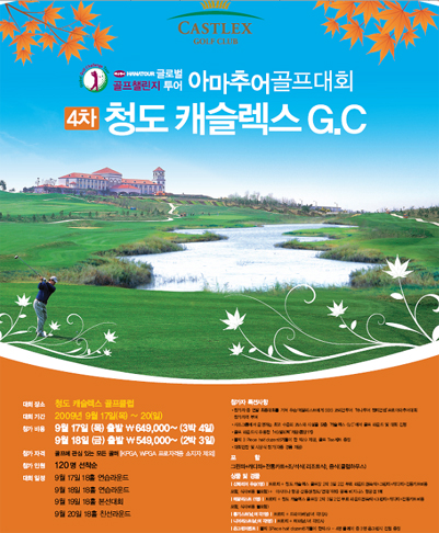 9월 17~19일 중국 칭다오 캐슬렉스 골프클럽에서 제 4차 하나투어 글로벌 골프챌린지 투어가 다음달 17~20일 중국 산둥성 칭다오 캐슬렉스 골프클럽에서 개최된다. 지난 4월 중국에서 시작해 태국, 일본을 거쳐 다시 중국에서 진행되는 대회는 회를 거듭할수록 보다 화려하고 풍성한 경품과 특전으로 골퍼들 사이에서 뜨거운 관심을 받고 있다. 이번 대회는 골프에 관심 있는 골퍼라면 누구나 참가할 수 있으며 신페리어 우승자에게는 트로피와 함께 캐슬렉스 골프장 2박3일 2인 무료 라운드권(숙박·그린피·캐디피·전동카트 비용 포함)과 아시아나항공 산둥성(칭다오·옌타이·웨이하이) 왕복 비지니스 항공권 1매가 제공된다. 메달리스트에게도 트로피와 캐슬렉스 골프장 무료 라운드권이 증정된다. 이외에도 홀인원 이벤트를 통해 싱가포르, 페낭, 푸껫을 여행할 수 있는 로얄 캐리비안 크루즈 레전드호 오션뷰 승선권을 지급하며 롱기스트, 니어리스트, 온그린 이벤트, 베스트 드레서, 포토제닉상 등을 통해 푸짐한 경품을 증정한다. 이번 대회 상품가격은 다음달 17일 출발(3박4일 일정) 64만9000원, 18일 출발(2박3일 일정) 54만9000원으로, 캐슬렉스 리조트 숙박과 전 일정 식사, 그린피, 캐디피, 전동카트비, 대회 당일 석식 만찬이 포함됐다. 여행미디어 주성희 기자 www.tourmedia.co.kr