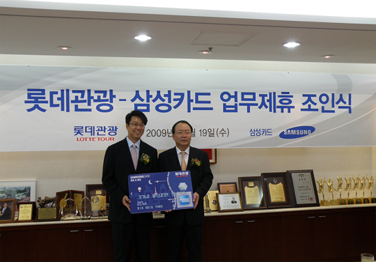 롯데관광개발, 삼성카드와 업무제휴 롯데관광개발이 지난 19일 광화문본사에서 삼성카드와 업무제휴를 체결하고 ‘롯데관광 빅앤빅(BIG&BIG) 아멕스 카드’를 출시했다. 이 카드는 롯데관광 해외여행패키지상품 구입 시 5%의 즉석할인은 물론 동화면세점의 플래티넘 회원자격(15% 할인)을 부여하며 250달러 이상 구입 시에는 2만원의 할인혜택을 제공한다. 이에 더해 5개월 무이자 할부, 최고 70만원의 트래블세이브 혜택과 여행·항공·철도·콘도·해외매출 시 최고 2배, 면세점 매출에 대해서는 최대 5배의 보너스 포인트도 적립해준다. 또한 외식업체인 아웃백스테이크하우스 에피타이저 무료 제공, 전국 스피드메이트 정비점에서 연간 1회 자동차 엔진오일 무료 교환 서비스, CGV 영화 관람 시 동반자 주중 무료, 에버랜드 동반자 주중 무료, 캐리비언베이 동반자 60% 할인 등 다양한 혜택을 제공해 고객 만족을 높일 계획이다. 백현 롯데관광개발 부사장은 “롯데관광은 이번 업무제휴를 통해 막대한 규모의 카드 수수료를 크게 낮춰 회사의 수익 확대가 기대된다”며 “고객은 카드 사용으로 다양한 혜택을 받을 수 있고 롯데관광개발은 고객유치에 도움 돼 일석이조의 효과를 거둘 수 있게 됐다”고 전했다. 여행미디어 박현영 기자 www.tourmedia.co.kr