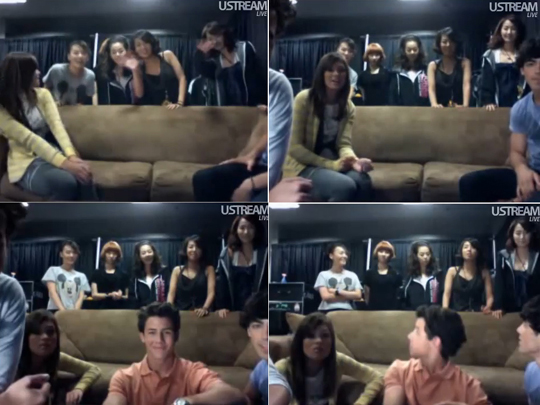 조나스 브라더스의 미주 콘서트 오프닝을 장식하고 있는 원더걸스가 조나스 브라더스의 라이브 웹 채팅에 깜짝 등장 했다. 원더걸스는 미국 동부시각으로 지난 8월 22일 오후 2시에 페이스북의 라이브 웹 캐스트에 조나스 브라더스의 소개로 깜짝 등장해 해외 팬들은 물론 일부 국내 팬들을 깜짝 놀라게 했다. 미국의 인기 있는 소셜 네트워크 웹사이트인 페이스북에서 진행하는 라이브 웹 캐스트는 팬들이 채팅형식으로 질문을 올리고 영상을 통해 얼굴을 비추는 조나스 브라더스가 질문을 채택해 대답을 하는 형식으로 진행됐다. 조나스 브라더스는 팬들과 대화 도중 원더걸스를 초청, 함께 이야기를 나누며 친분을 과시했다. 조나스 브라더스 팬들의 ‘어디서 왔나?’는 질문에 원더걸스는 "우리는 한국에서 왔고 지금은 뉴욕에 머물고 있다"고 대답했다. ‘가장 좋아하는 곳은 어디인가?’는 질문에는 멤버 선예가 "catering..(식당, 전미 투어 콘서트시 식사 서비스)"라고 대답해 두 그룹의 모든 멤버들이 함께 공감하며 웃었다. 또 원더걸스는 조나스 팬들의 요청으로 'Nobody(노바디)' 춤도 보여줬다. 그룹 결성 및 박진영에 관한 이야기를 함께 나누는 한편 원더걸스 선예와 조나스브라더스의 조 조나스(Joe Jonas)는 서로를 써니(Sunny)-조니(Jonny)라고 부른다고 밝히며 친분을 과시하기도 했다. 원더걸스 외 조나스브라더스와 함께 시트콤에 출연 예정인 니콜 앤더슨, 조나스 브라더스 콘서트 오프닝 무대를 장식한 조단 스팍스도 깜짝 등장한 페이스북 라이브 웹 캐스트 영상은 유튜브 등 동영상 서비스 사이트에서 시청 할 수 있다. 한편, 원더걸스는 미국에서 조나스 브라더스의 전미 투어 오프닝 무대를 장식하며 바쁜 일정을 보내고 있다. happy@osen.co.kr JYP엔터테인먼트 제공.