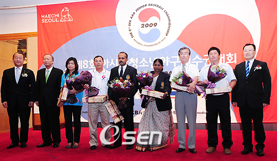 제 8회 아시아청소년야구선수권대회 리셉션이 24일 저녁 서울 마포 가든호텔 무궁화홀에서 열렸다. 이번 대회는 25일부터 29일까지 닷새간 서울 목동야구장에서 열리며 6개국이 상·하위 그룹으로 나눠 리그를 벌인 뒤 우승팀을 가리게 된다. 상위 그룹 A조에는 한국 일본 대만이, 하위 그룹 B조에는 중국 태국 스리랑카가 속해 있다. 2년마다 열리는 이 대회에서 2005년과 2007년 2번 연속 준우승에 그친 한국은 2003년 태국 대회 이후 6년 만에 우승에 도전한다. 리셉션 중 각팀 구단 대표에게 꽃다발 증정식 후에 포토타임을 갖고 있다./민경훈 기자 rumi@osen.co.kr