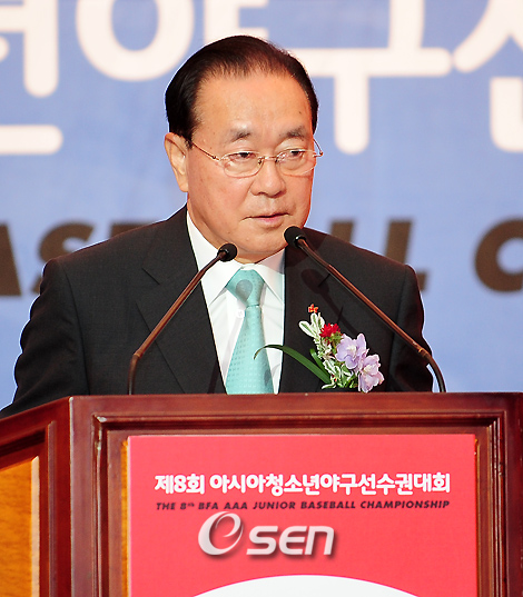 제 8회 아시아청소년야구선수권대회 리셉션이 24일 저녁 서울 마포 가든호텔 무궁화홀에서 열렸다. 이번 대회는 25일부터 29일까지 닷새간 서울 목동야구장에서 열리며 6개국이 상·하위 그룹으로 나눠 리그를 벌인 뒤 우승팀을 가리게 된다. 상위 그룹 A조에는 한국 일본 대만이, 하위 그룹 B조에는 중국 태국 스리랑카가 속해 있다. 2년마다 열리는 이 대회에서 2005년과 2007년 2번 연속 준우승에 그친 한국은 2003년 태국 대회 이후 6년 만에 우승에 도전한다. 이내흔 아시아야구연맹 회장이 대회사를 말하고 있다./민경훈 기자 rumi@osen.co.kr