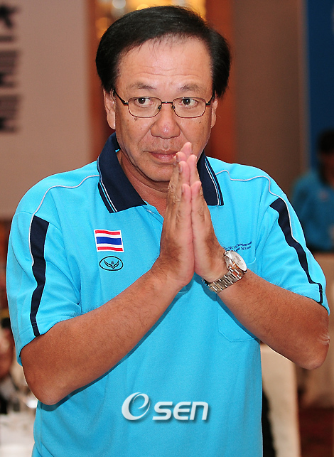 제 8회 아시아청소년야구선수권대회 리셉션이 24일 저녁 서울 마포 가든호텔 무궁화홀에서 열렸다. 이번 대회는 25일부터 29일까지 닷새간 서울 목동야구장에서 열리며 6개국이 상·하위 그룹으로 나눠 리그를 벌인 뒤 우승팀을 가리게 된다. 상위 그룹 A조에는 한국 일본 대만이, 하위 그룹 B조에는 중국 태국 스리랑카가 속해 있다. 2년마다 열리는 이 대회에서 2005년과 2007년 2번 연속 준우승에 그친 한국은 2003년 태국 대회 이후 6년 만에 우승에 도전한다. 리셉션 중 태국 매니저인 히로토시 와타나베가 인사를 하고 있다./민경훈 기자 rumi@osen.co.kr